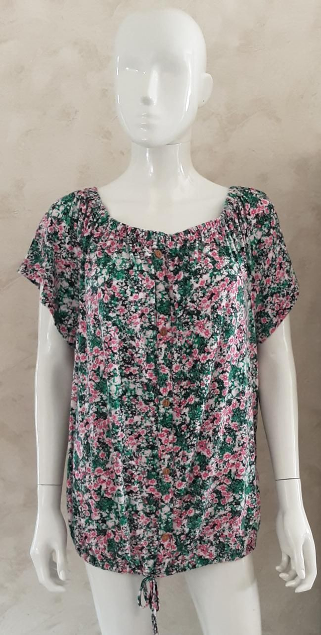 Haut Manche courte motif fleurs vert et rose
