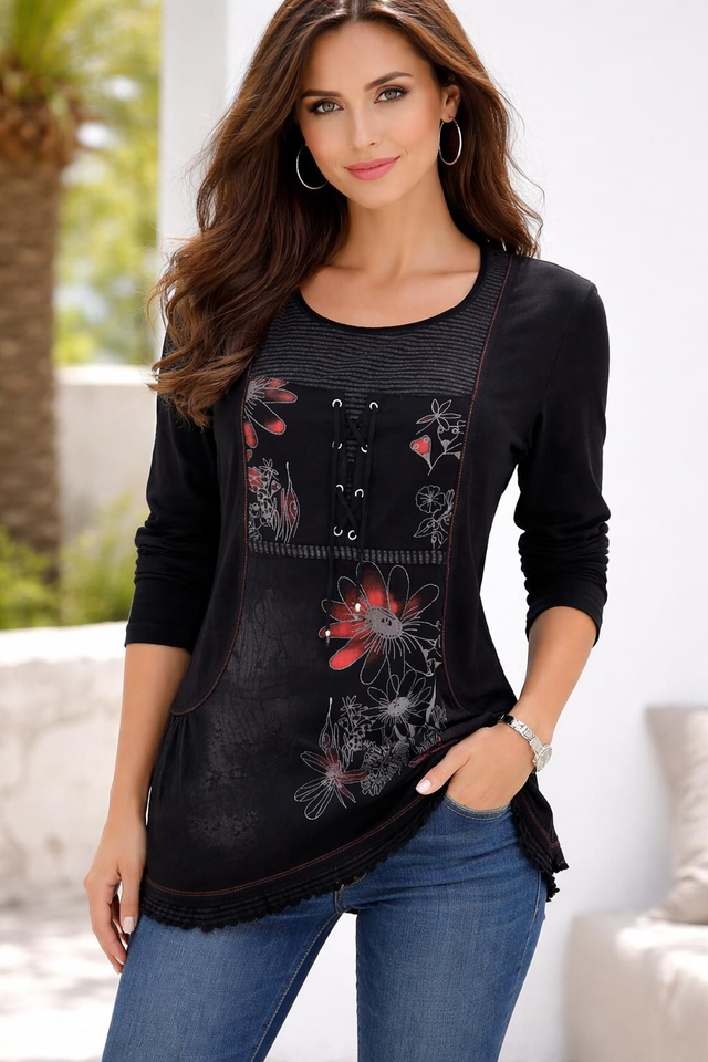 Devant motif fleuri avec lacet